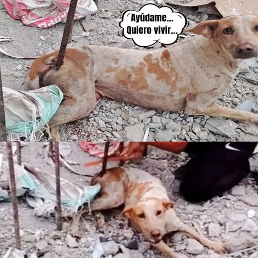 Cuando los rescatistas lo encontraron, nadie podía creer que aún siguiera con vida. El perro yacía inmóvil a un costado del camino, exhausto, cubierto de heridas y con un palo incrustado en su cuerpo, señal inequívoca de la violencia y el abandono que había sufrido. A su alrededor no había nadie, solo silencio, polvo y la indiferencia de un mundo que parecía haberlo olvidado. Sin embargo, incluso en ese estado crítico, algo en su mirada revelaba que no estaba listo para rendirse.